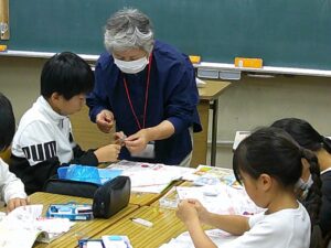 5年生では、家庭科の初めての裁縫の授業に地域のサポーターの方が指導に来てくださいました。