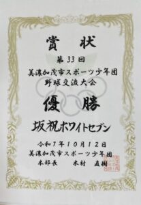 第33回美濃加茂市スポーツ少年団野球交流大会 優勝‼ ※真紅旗優勝チームと対戦しました。