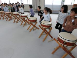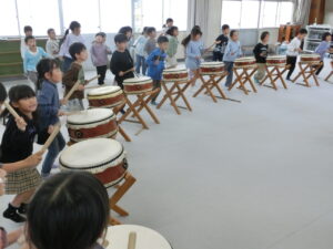 「エクサドン」とは、エクササイズと佐渡と太鼓の「ドン」🥁を組み合わせた造語だそうです。10月27日(月)に、エクサドンファシリテーターの三品さんに来ていただいて、1・2年生が太鼓を使ったエクササイズを行いました。