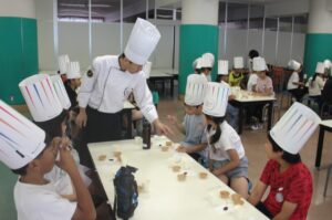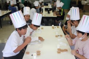 「塩味」=塩、「酸味」=米酢、「甘味」=砂糖、「苦味」=苦チョコ、「旨味」=だし汁・鰹節を味わいながら、味の基本となる5つの要素について食のプロフェッショナルである一流シェフから学び、味覚を意識しながら味わうことの大切さや食べることの楽しさを学びました。また、日頃から料理してくださっている方への感謝の気持ちも改めてもつことができました。