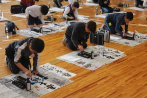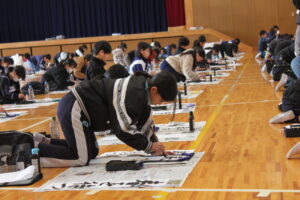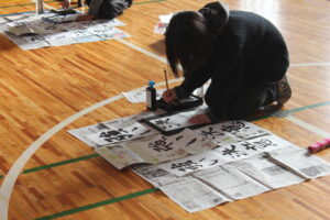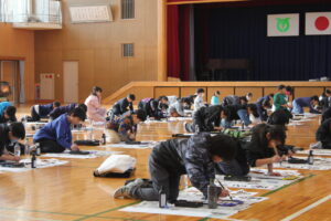 冬休みに練習した、それぞれの学年の言葉を新年の決意を込めて、一文字一文字ていねいに書くことができました。