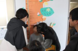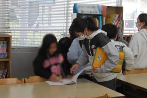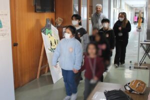 保健室前で身長比べをしたり、図書館でたくさんの本を見たり、5年生の皆さんがやさしく手をつなぎ、丁寧に学校を案内してくれました。